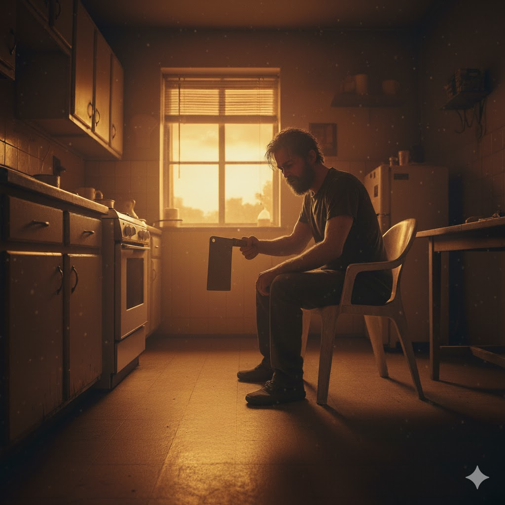 چند بار ساطور را دست به دست کرد. نه به این خاطر که توانایی فرود آوردن آن را نداشته باشد.بلکه به این خاطر که دست چپش زیاد قدرت نداشت. نمیدانست که میتواند با یک ضربه کار را تمام کند یا نه.